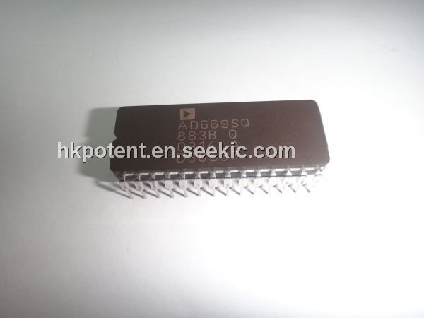 AD669SQ/883B features: (1)Complete 16-Bit D/A Function, On-Chip Output Amplifier; High Stability Buried Zener Reference; (2)Monolithic BiMOS II Construction; (3)61 LSB Integral Linearity Error; (4)15-Bit Monotonic over Temperature; (5)Microprocessor Compatible, 16-Bit Parallel Input; Double-Buffered Latches; (6)Fast 40 ns Write Pulse; (7)Unipolar or Bipolar Output; (8)Low Glitch: 15 nV-s; (9)Low THD+N: 0.009%; (10)MIL-STD-883 Compliant Versions Available.