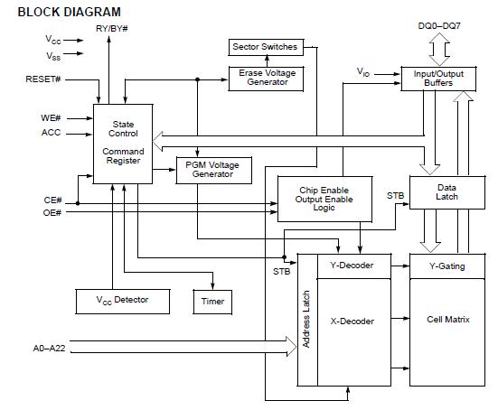 The AM29LV065DU-120REI is a 64Mbit, 3.0 Volt (3.0 V to 3.6 V) single power supply flash memory device organized as 8,388,608 bytes.