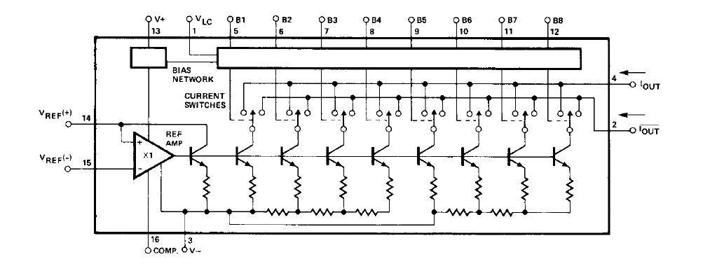 The DAC208FX is a 2-digit BCD high speed multiplying D/A converter. The DAC208FX provides very high-speed performance coupled with low cost and outstanding applications flexibility. Advanced circuit design achieves 85ns settling times with very low "glitch" energy and at low power consumption. Monotonic multiplying performance is attained over a wide 20 to 1 reference current range.