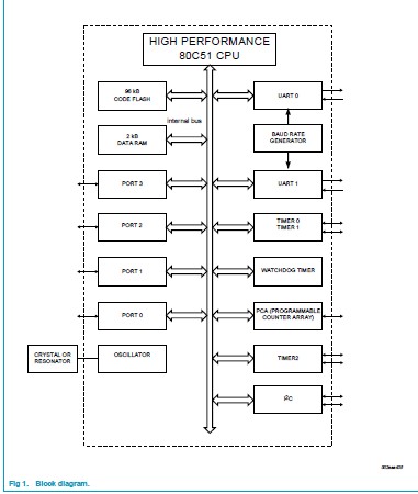 P89C669FA features: (1) 100% binary compatibility with the classic 80C51 so that existing code is completely reusable; (2) Up to 24 MHz CPU clock with 6 clock cycles per machine cycle; (3) 96 kbytes of on-chip program Flash; (4) 2 kbytes of on-chip data RAM; (5) Programmable Counter Array (PCA); (6) Two full-duplex enhanced UARTs; (7) Byte based Fast I2C serial interface (400 kbits/s).