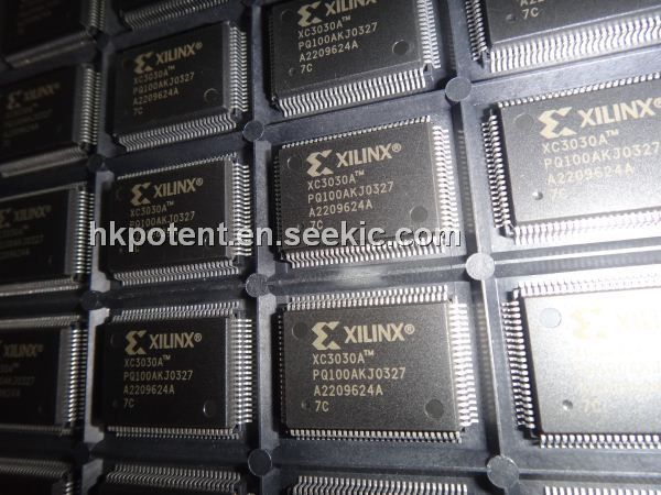 XC3030A-7PQ100C features: (1)Complete line of four related Field Programmable Gate Array product families, XC3000A, XC3000L, XC3100A, XC3100L; (2)Ideal for a wide range of custom VLSI design tasks: Replaces TTL, MSI, and other PLD logic; Integrates complete sub-systems into a single package; Avoids the NRE, time delay, and risk of conventional masked gate arrays; (3)High-performance CMOS static memory technology, Guaranteed toggle rates of 70 to 370 MHz, logic delays from 7 to 1.5 ns; System clock speeds over 85 MHz; Low quiescent and active power consumption; (4)Flexible FPGA architecture: Compatible arrays ranging from 1,000 to 7,500 gate complexity; Extensive register, combinatorial, and I/O capabilities; High fan-out signal distribution, low-skew clock nets; Internal 3-state bus capabilities; TTL or CMOS input thresholds; On-chip crystal oscillator amplifier; (5)Unlimited reprogrammability: Easy design iteration; In-system logic changes; (6)Extensive packaging options: Over 20 different packages; Plastic and ceramic surface-mount and pin-gridarray packages; Thin and Very Thin Quad Flat Pack (TQFP and VQFP) options; (7)Ready for volume production: Standard, off-the-shelf product availability; 100% factory pre-tested devices; Excellent reliability record; (8)Complete Development System: Schematic capture, automatic place and route; Logic and timing simulation; Interactive design editor for design optimization; Timing calculator; Interfaces to popular design environments like Viewlogic, Cadence, Mentor Graphics, and others.
