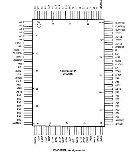 The Z8401510FEG is an enhanced intelligent peripheral controller. The Z8401510FEG is a CMOS 8-bit microprocessor integrated with the CTC, SIO, CGC, WDT and the PIO into a single 100-pin QFP, or 100-pin VQFP package. The Z8401510FEG is targeted for a broad range of applications ranging from error correcting modems to enhancement/ cost reductions of existing hardware using Z80 MCU-based discrete peripherals.